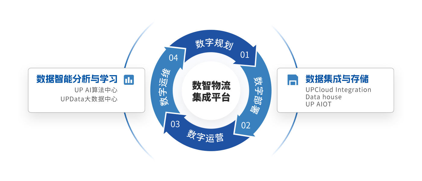 集成自動化物流硬件的同時,結(jié)合UPCloud EIS、WCS、PLC等調(diào)度系統(tǒng),進(jìn)行多設(shè)備對接,實(shí)現(xiàn)全局效率提升。數(shù)字運(yùn)營